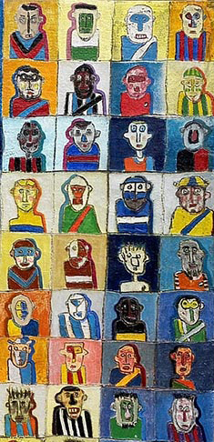 Hoy en Arcimboldo veremos algunas de la gran cantidad de obras realizadas por él en estos últimos veinte años, obras que con base de arena y enduído, nos descubren su mundo, teñido de conceptos identitarios, latinoamericanos, desde lo cotidiano a lo urbano, cuestión que logra destacar a partir de los rituales que ejerce en la constitución de cada trabajo, elaborando en ellos una cadena de significantes que son su discurso visual en ésta, su pintura.