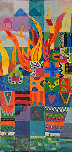 Porque sus pinturas convertidas en espacios ceremoniales exteriorizan, precisamente, lo que en la fiesta abunda, elementos antagónicos y complementarios, la afirmación de los valores y la subversión, el caos y el orden, la ruptura y la regeneración.