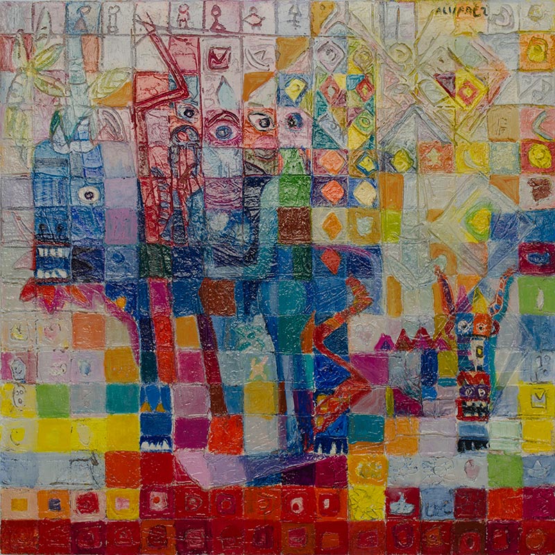 de 20 x 20 cm. Transfer, acrílico sobre madera